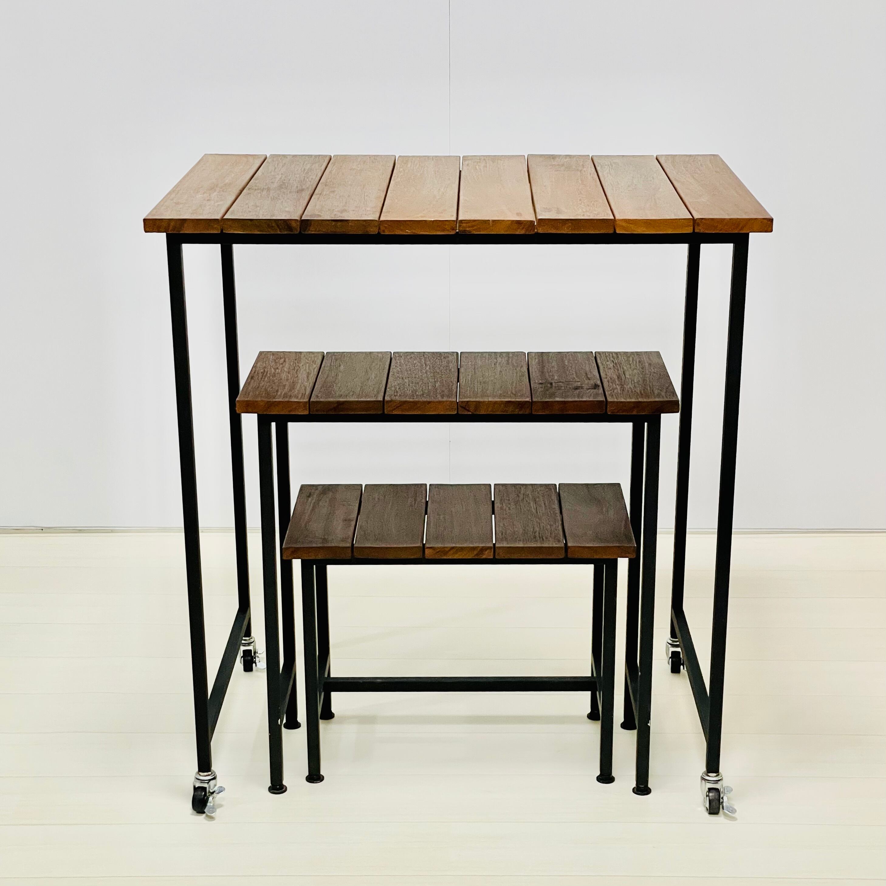 鉄とウッドデッキを組み合わせ、職人がひとつひとつ丁寧に製作しました。シンプルでナチュラルな雰囲気でありながら重厚感も感じさせ、あらゆるシーンにマッチします。